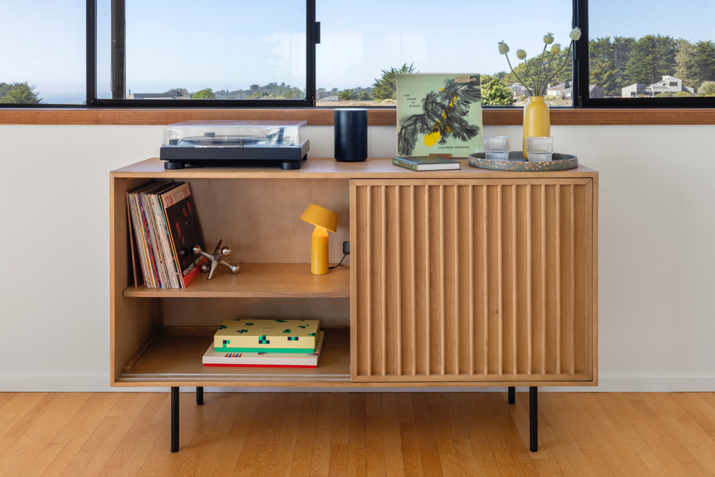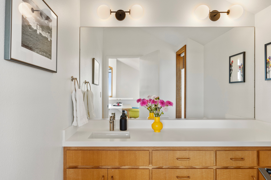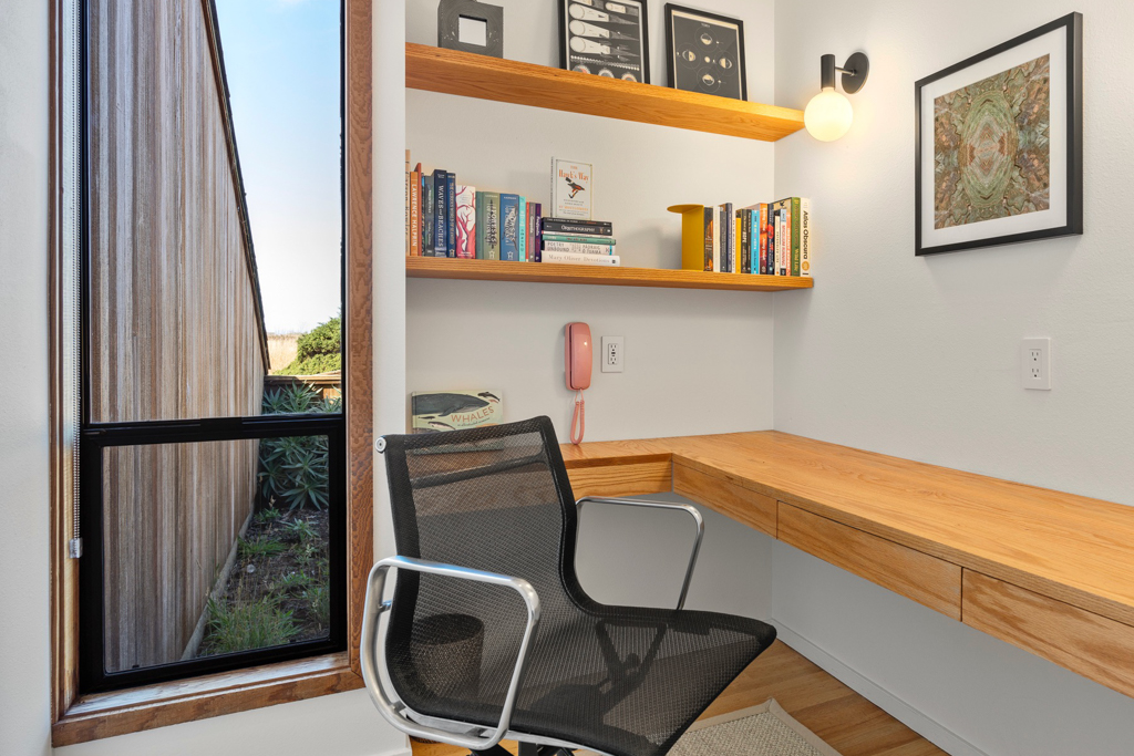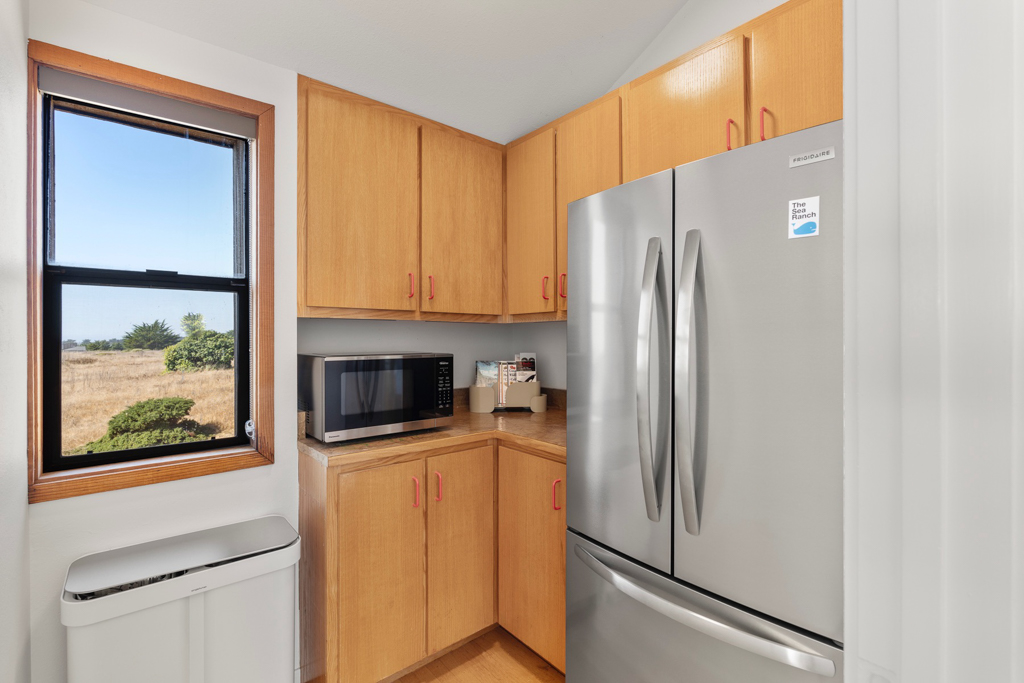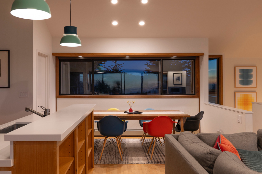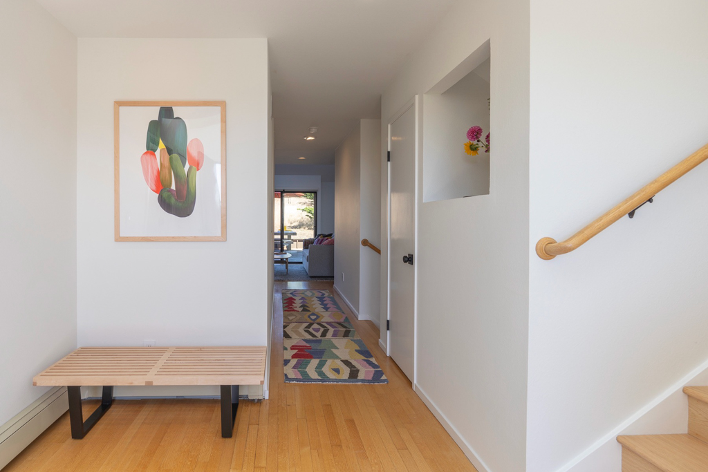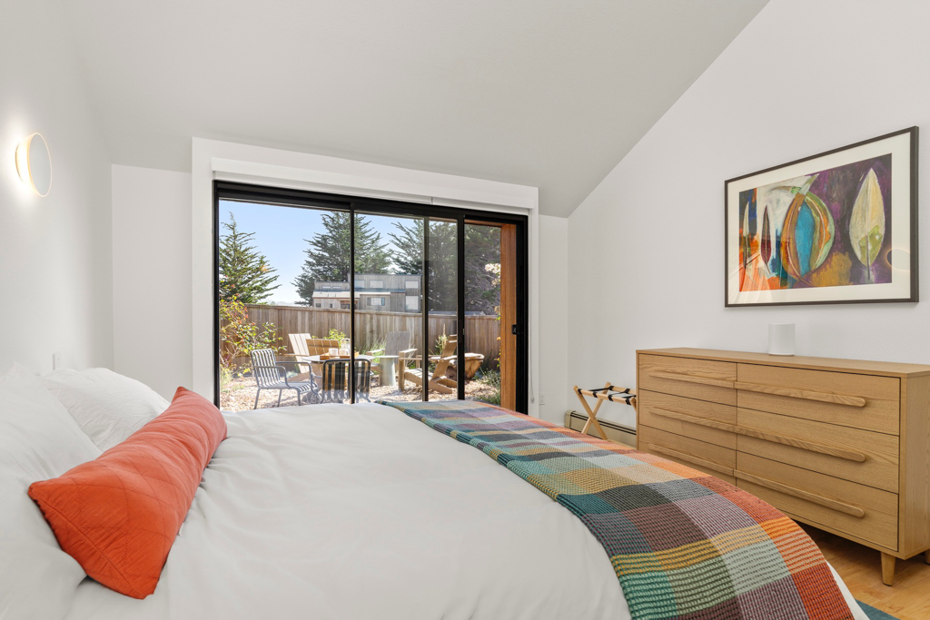 This J. Carson Bowler designed home boasts a light-filled great room with cathedral ceilings and a newly remodeled chef’s kitchen upstairs. Take in the views of the meadow and ocean while cooking and dining. Grab a drink, put on a record and get cozy around the wood-burning fireplace.