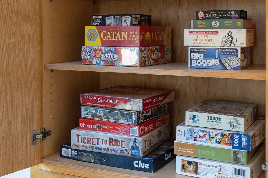 Downstairs find 2 large bedrooms with deluxe king beds, 2 full baths and a family room with flat-screen TV. Curl up to read, watch movies or play board games from the well-stocked games cabinet. Have a creative project in mind or need to squeeze in a bit of work in-between outdoor activities? Hawk Haven has you covered with two comfortable work spaces and 1Gb fiber internet.